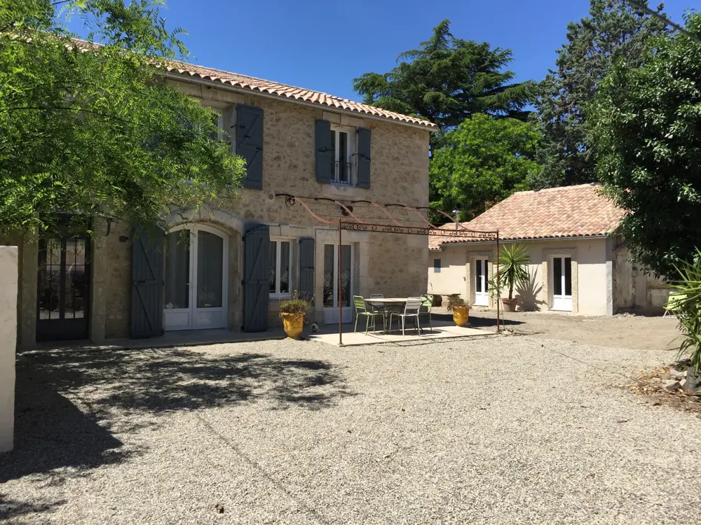 Les extérieurs sont entièrement clos pour préserver votre intimité et sans vis à vis. Sa vaste cour vous offrira des moments de détente où le silence est troublé uniquement par le chant des oiseaux et des cigales de mi-juin à fin-août.